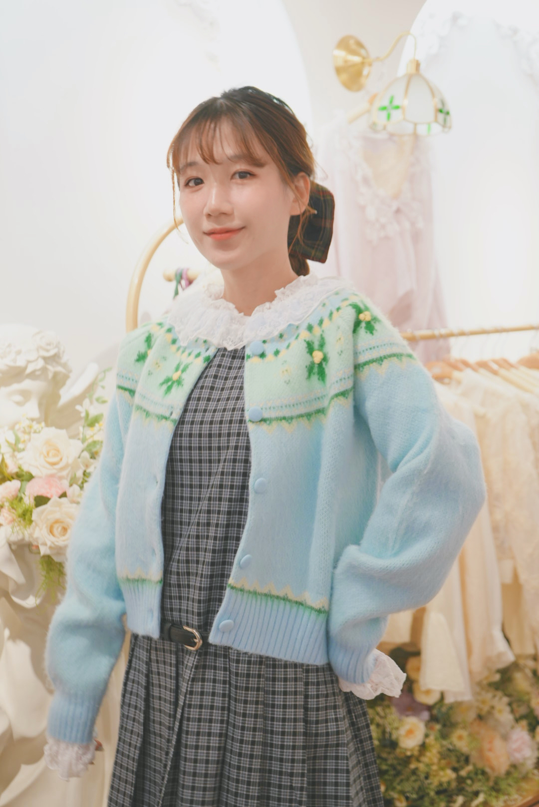 天藍色圖騰針織外套